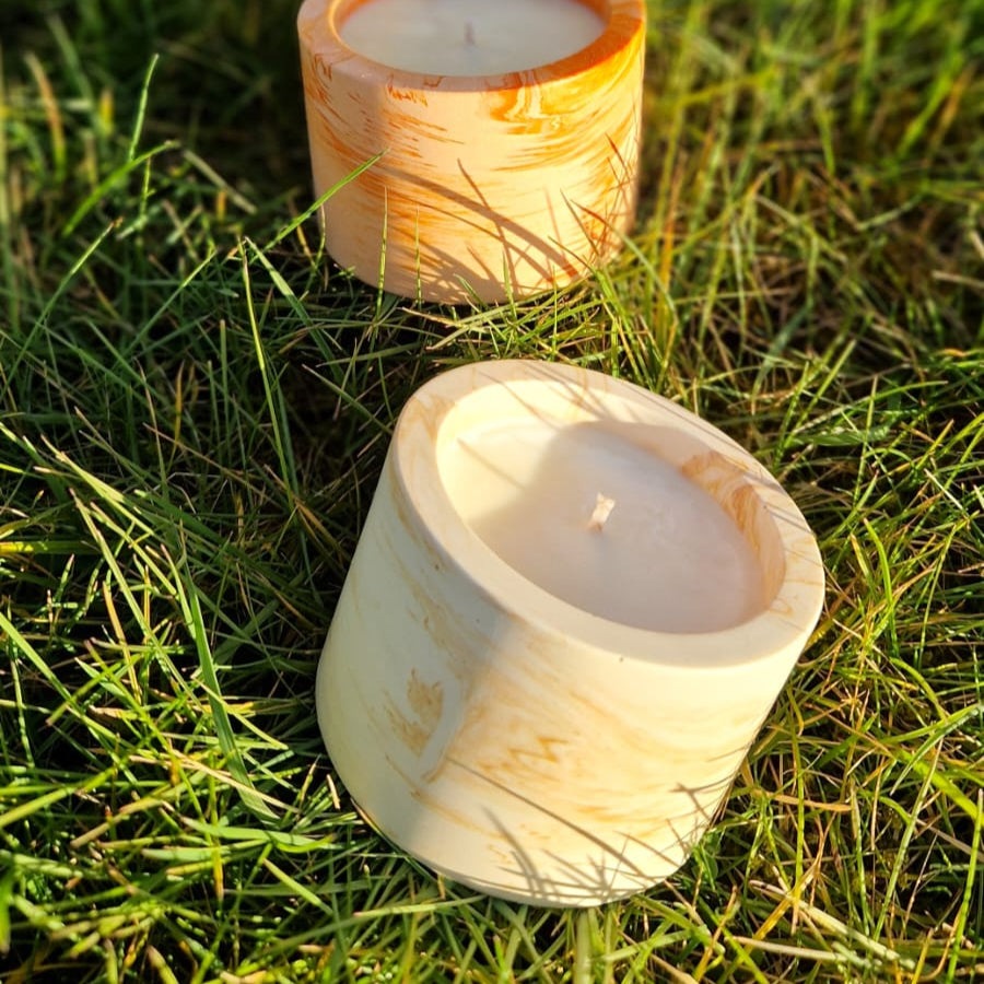 Beautiful candle jar made of cement (jesmonite), fully handmade in house.
